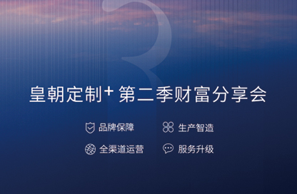 继第一季财富分享会成功举办后,此次峰会延续“定制新变革 共赢新未来”主题,再次以饱满的热情,静候各位共襄财富大计! 品牌优势 皇朝定制+ 在皇朝…