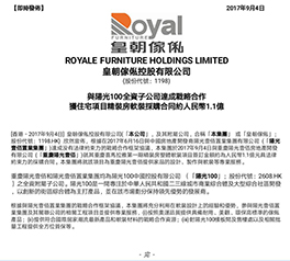 香港皇朝家私9月4日发布公告称,根据2017年6月16日与中国房地产开发商阳光壹佰置业集团有限公司(「阳光壹佰置业集团」)达成的战略合作框架协议,皇朝家私于20… 星辰影视高清.