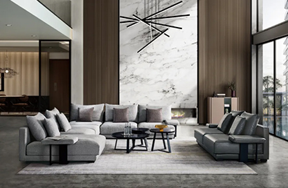 客厅作为一个家的门面既 满足人们的生活方式和居住功能 又能体现主人的文化背景与修养内涵 皇朝意式极简风格家居——VERONA 设计精致…
