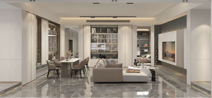 20m²全屋定制【全屋现代简约风格】+12件套全屋家具【沙发*2+茶几*1+餐桌*1+餐椅*4+1. 5m床架*1+1. 5m安柔床垫*1+TJC2201床头柜*1+皇朝乳胶枕*1】+3m²护墙+2件套木门(FM0101) 星辰影视.