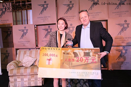 最后颁发的是本次大赛的设计大奖,得奖者将会获得水晶奖杯、美国《室内设计》中文版杂志提供的现金奖2万元、由DURESTA中国总代理香港皇朝家私集团提供的30万元礼金券,以及ID和FT一年免费订阅和ID会籍。最后揭晓首届ID+D设计大赛设计大奖由彭小娱获得。颁奖嘉宾香港皇朝家私集团主席谢锦鹏先生为获奖设计师彭小娱颁发以上奖项。