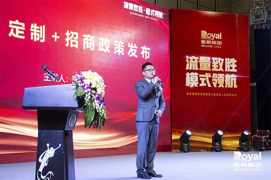 年会上,皇朝定制+招商总监陈杰先生进行了定制招商政策发布,他明确指出,拎包入住的推进,有着1+1+1>3的效果(全屋定制、成品配套以及整体橱柜进行整合开展拎包收益远高于三品类单独运营的收益)。