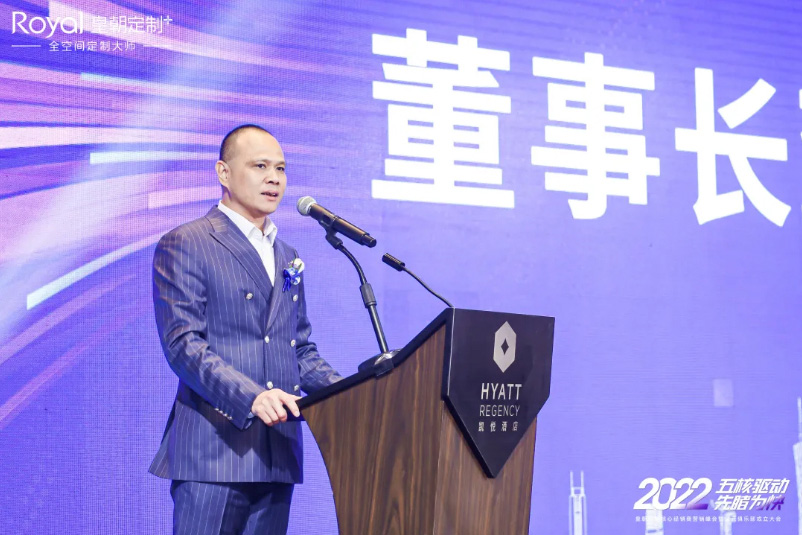陈董在会议上说到:“五核驱动,先睹为快”,2022年皇朝定制将进行多维度扩展,打造专属皇朝定制的核心驱动力,以品牌带动终端业绩,以终端扩散品牌影响力 星辰影院,让皇朝定制成为家居行业不可忽视的重要力量,” 。