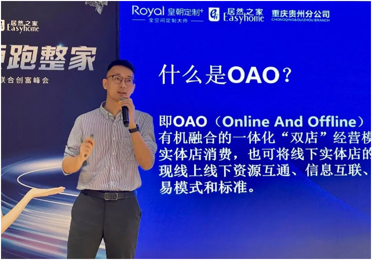 皇朝定制新零售渠道部经理冯信炜先生向嘉宾展示新零售赋能奥秘。