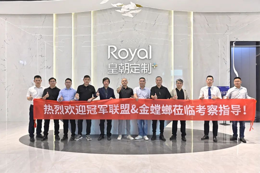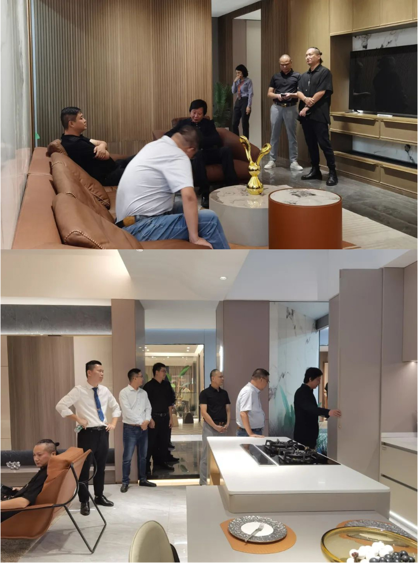 在皇朝定制家居体验馆中,每个空间,每个系列,从柜类定制到相应的空间配套成品家具,参访团一行在工作人员的带领下充分了解皇朝定制产品体系,对产品调性和工艺品质有了更清晰直观的认知。