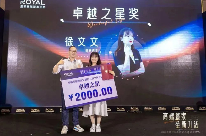 第二名“卓越之星”获奖者为徐文文,皇朝定制培训部总监黄辉海先生为其颁发奖励。