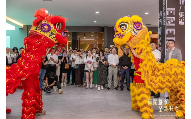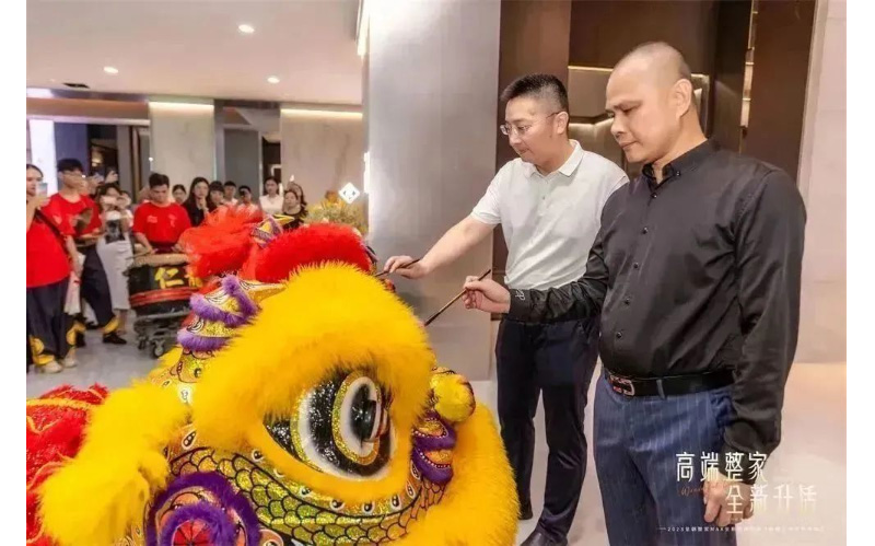 杨俊先生和陈浩先生一起为皇朝高端整家定制生活馆揭幕仪式进行醒狮点睛 星辰影院,更有狮子采青,醒狮起舞献祥瑞,祝愿, 。