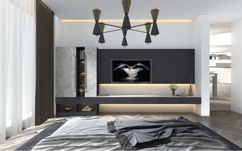 内嵌式到顶鞋柜,也是作为卧室收纳柜的主要之一,一门到顶的设计将整个空间递增出来,既删繁去简,又干净利落,简约有质感的吊灯和精致的饰物细节 星辰影视免费观看,也提升了空间的通透性, 。