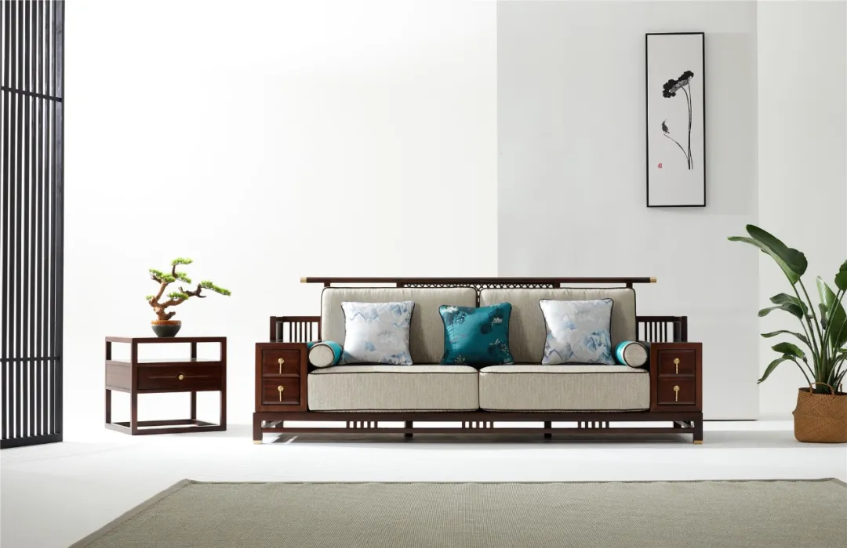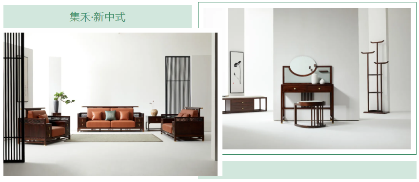 集禾系列追求删繁就简,去掉了部分装饰性家具,精简品类,保留了沙发 星辰影视在线,桌椅,床,花架等具备.