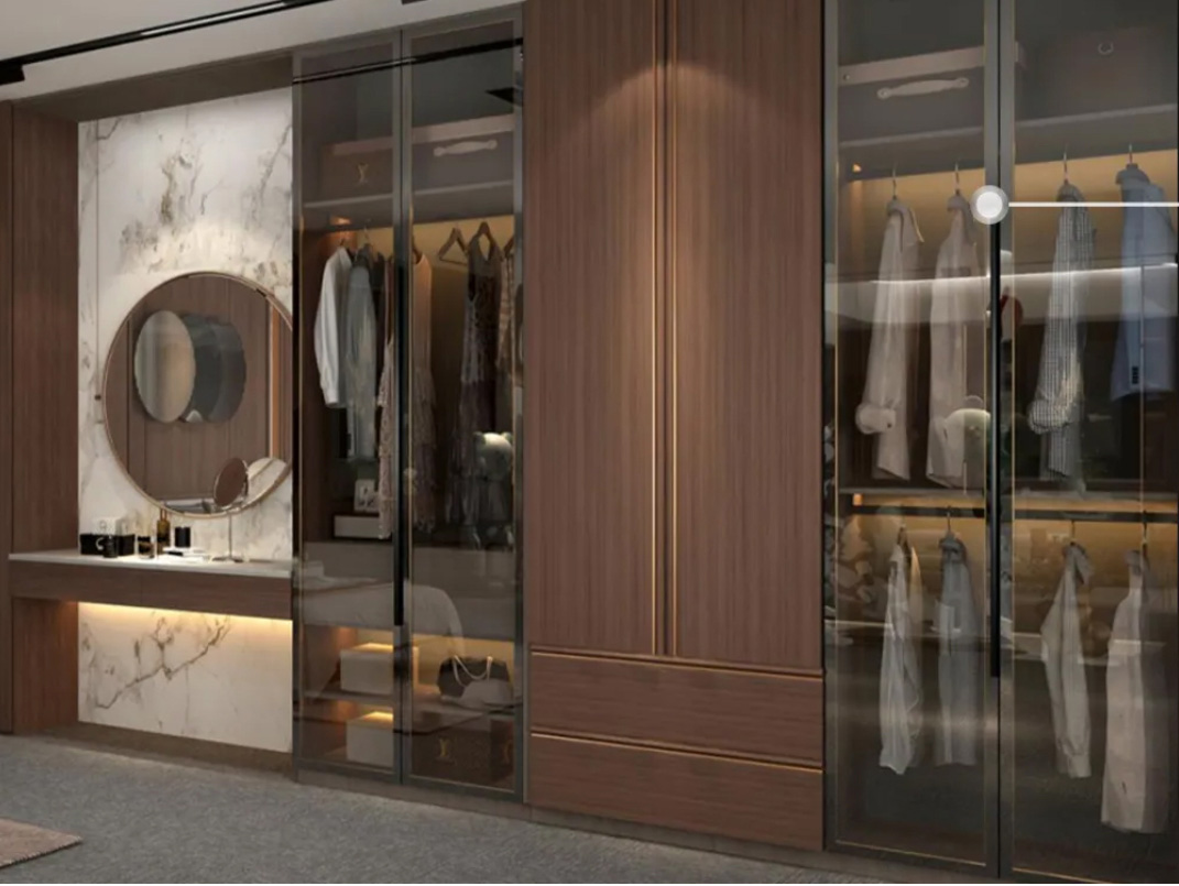 铜拉丝半圆铝框+茶色玻璃门
