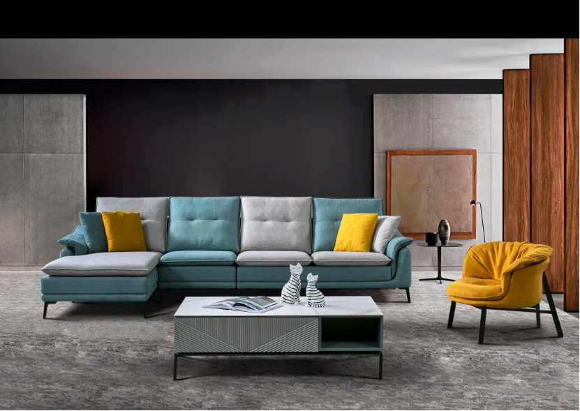 嫌客厅空间沉闷无趣?那就搭配这款色彩鲜活的洛库系列海盐芝士沙发吧!蓝+浅灰的配色,点缀亮丽黄抱枕,即使混色搭配也不显违和与花哨,摆脱单调,给你的家增添一抹个性色调。