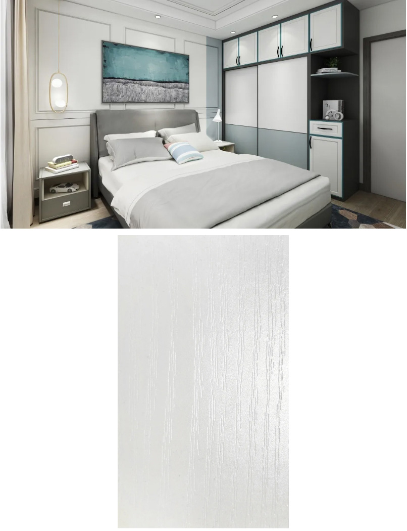 白色是空间设计的基础色,百搭,而在白色的基础上,这款板材的纹理若隐若现,更能演变出万般变化。