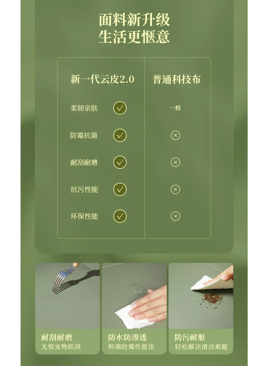 材质:云皮2. 0环保面料、全实木框架、皇朝专研高密度高回弹海绵 星辰影院.