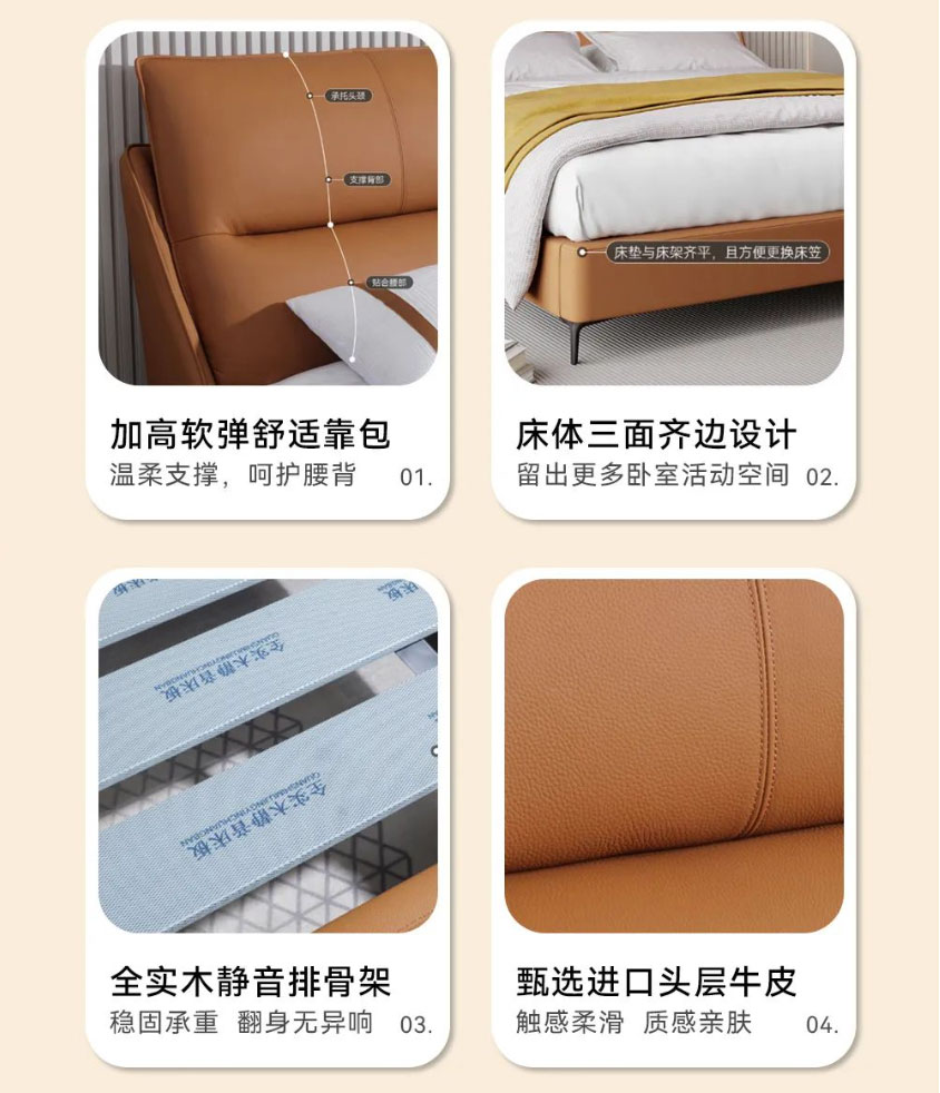 【进口头层牛皮软床】