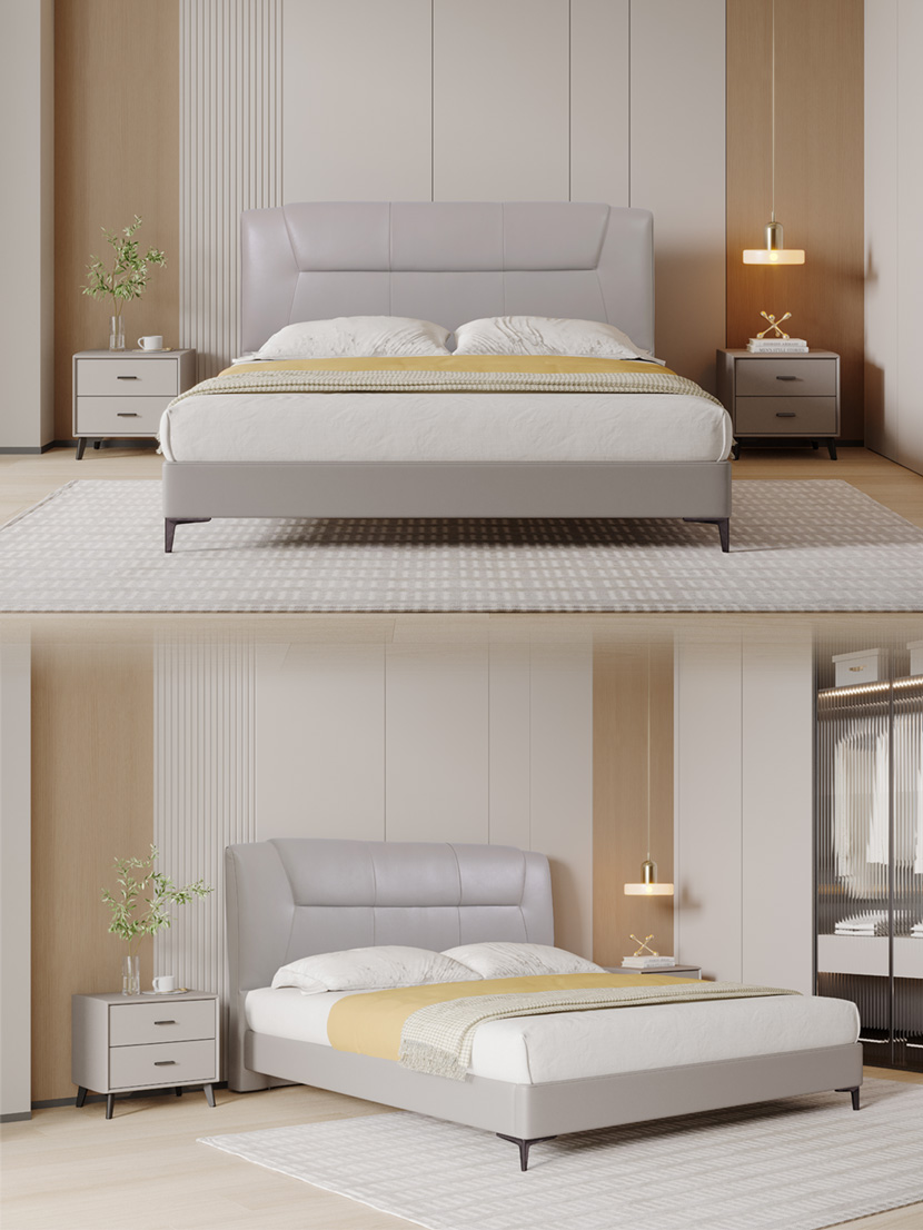 进口头层牛皮大床,米奢系列MSA2303真皮软床, 星辰影视.