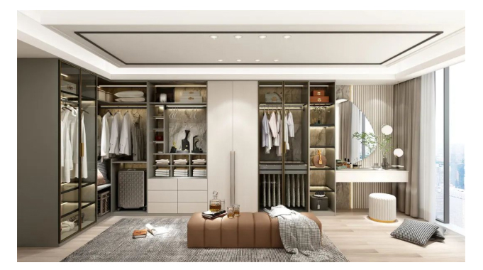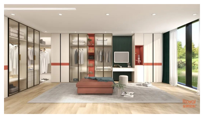 衣帽间的柜子尤为重要,普通长为1000mm或者1500mm,可以根据空间的面积与实际使用情况来决定。