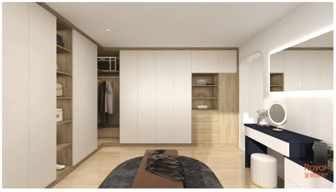 阳光穿过缝隙倾泻而入,大大的衣帽间里收纳了自己的一年四季,虚实结合的空间布局,正好是生活的开启。