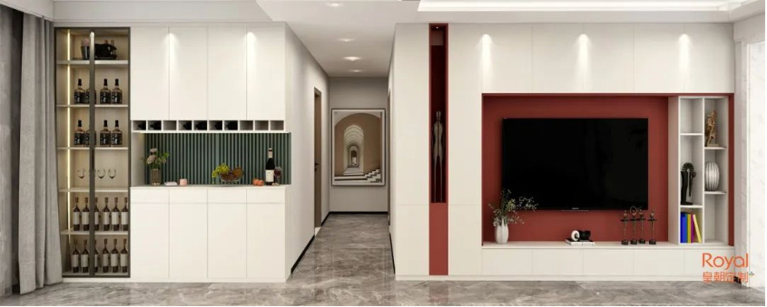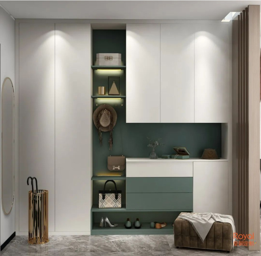 到顶玄关柜,储物与展示空间搭配得恰到好处。灯光和色彩的有机相宜,让整体设计变得更具低调的时尚感。