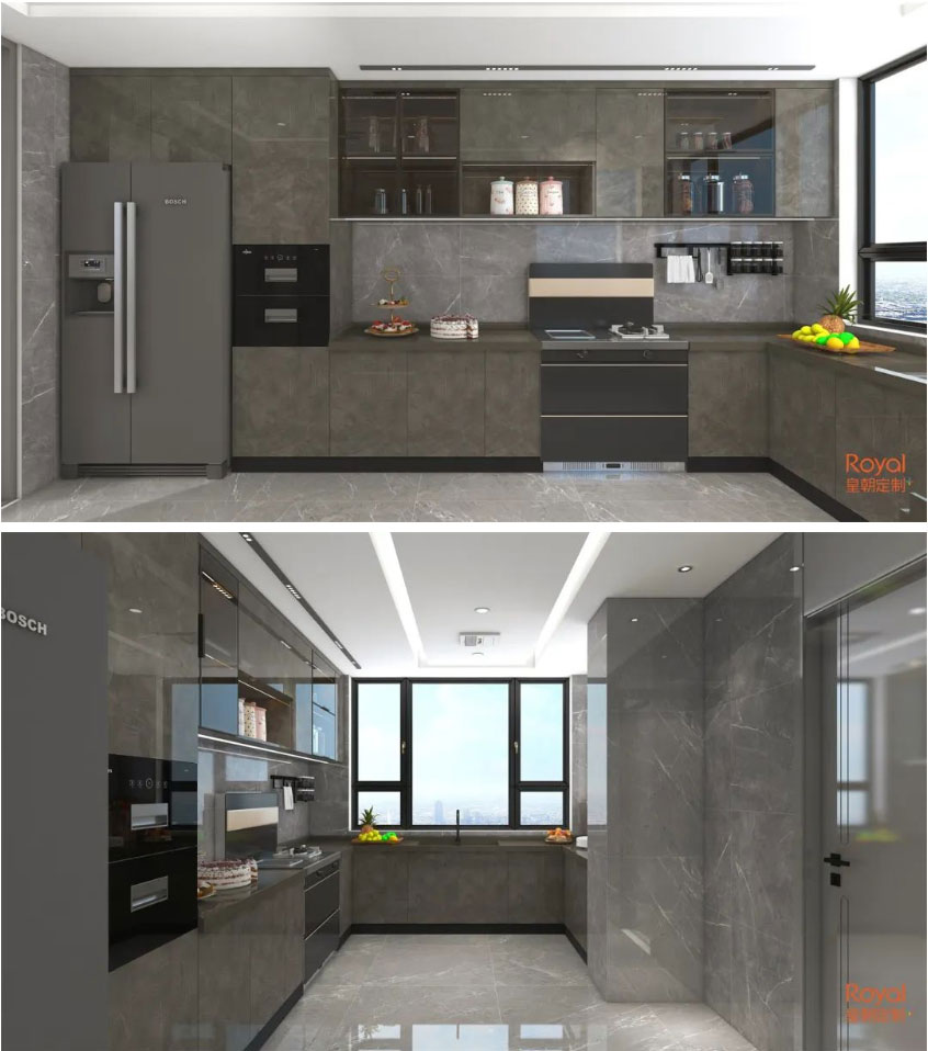 亮光面的出轨,看似一体化的设计,更是融合了所有电器的厨房设计,这样的厨房,简约时尚有韵味,给人一种安静、舒适的感觉。