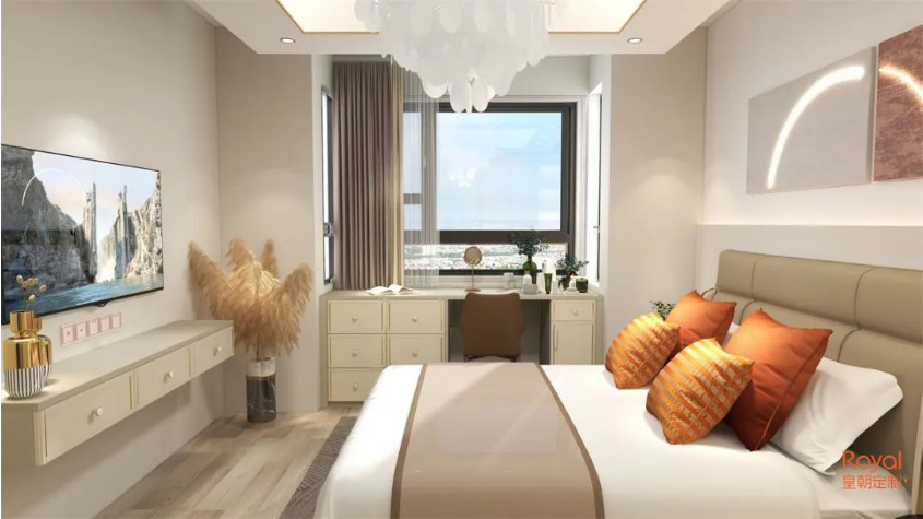 不同家具造型的高矮错落,降低了压迫感,更实现了空间的最大利用率,使卧室更加明亮宽敞,还能营造出错落有致的空间美学 在线影视, 。