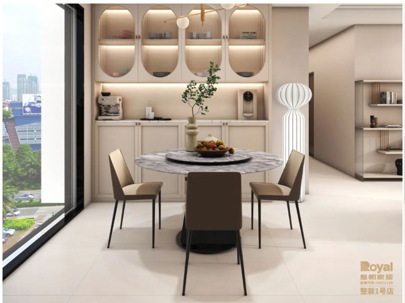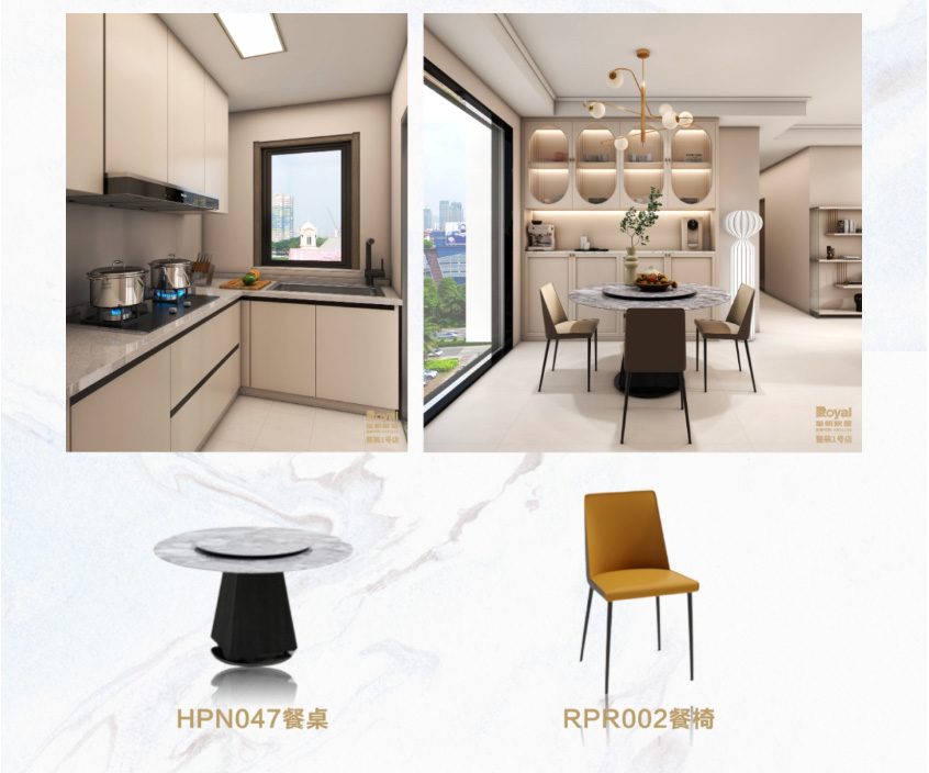 餐厅与厨房一门之隔进行空间分区,厨房L型布局,以储物,收纳作为重点进行定制橱柜,餐厅区域大理石的餐桌椅搭配,精致的装饰 星辰影视在线,打造了完美的用餐场所,在这里,我们心与心相互交融,享受着浪漫的味道,餐厅酒柜亦结合法式的弧形线条,金属以及条纹玻璃元素进行设计,使整体空间增添些许华丽精致, 。