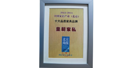 2014年,香港皇朝家私荣获“中国家居产业(北京)十大品质家具品牌”大奖。