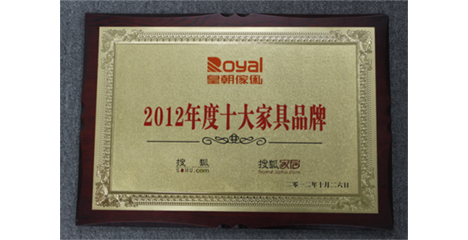 2012年10月,皇朝家私被评为“2012年度十大家具品牌”。