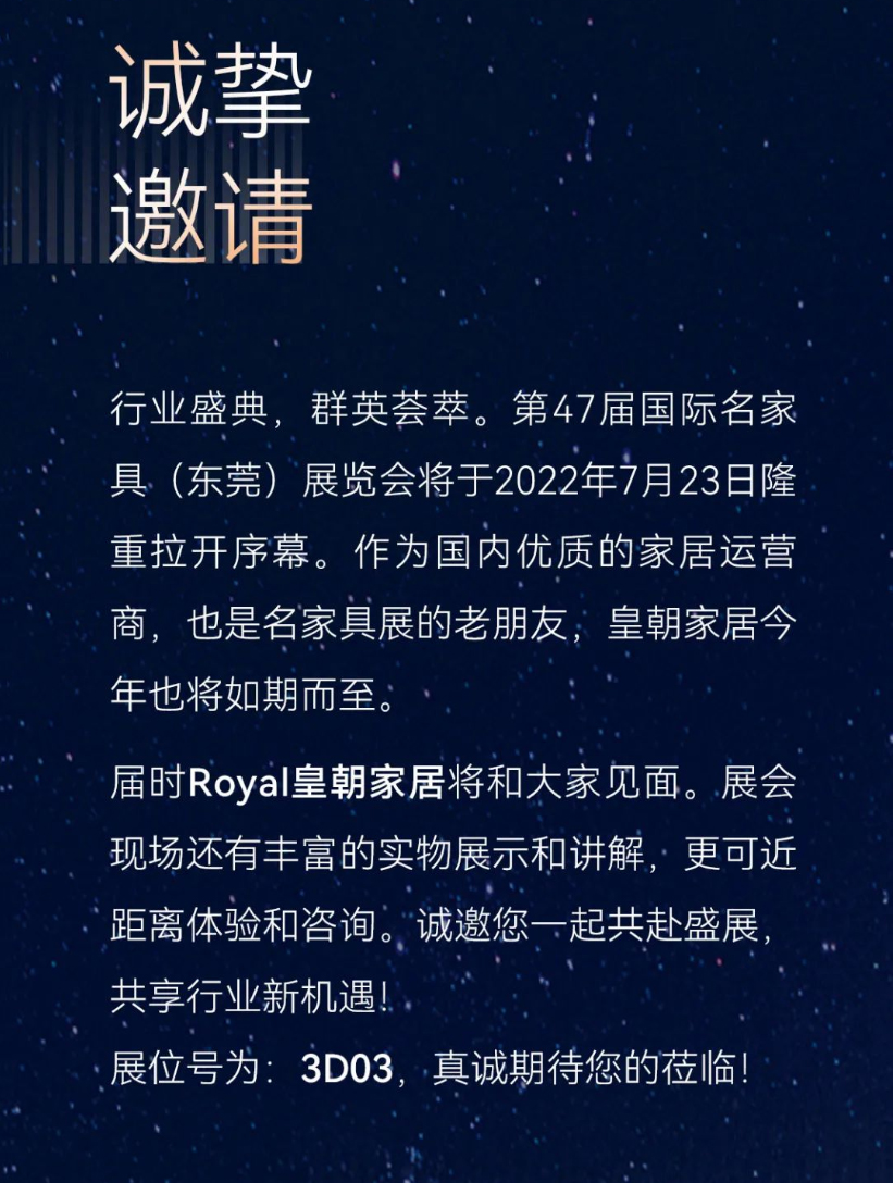 【皇朝沙发】诚挚邀请|皇朝沙发携新品邀您共约7月23-27日…