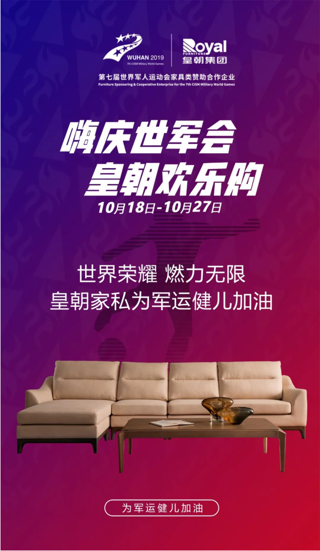 同时,为庆贺皇朝家私成为第七届军运会赞助合作企业以及军运会的顺利举办,10月18-27日军运会期间,凡购买皇朝产品,均可享受多重优惠 星辰影视免费观看,买家具更送玛莎拉蒂,欢迎各位到线下门店详询,优惠多多,限时抢购,不要错过, 。