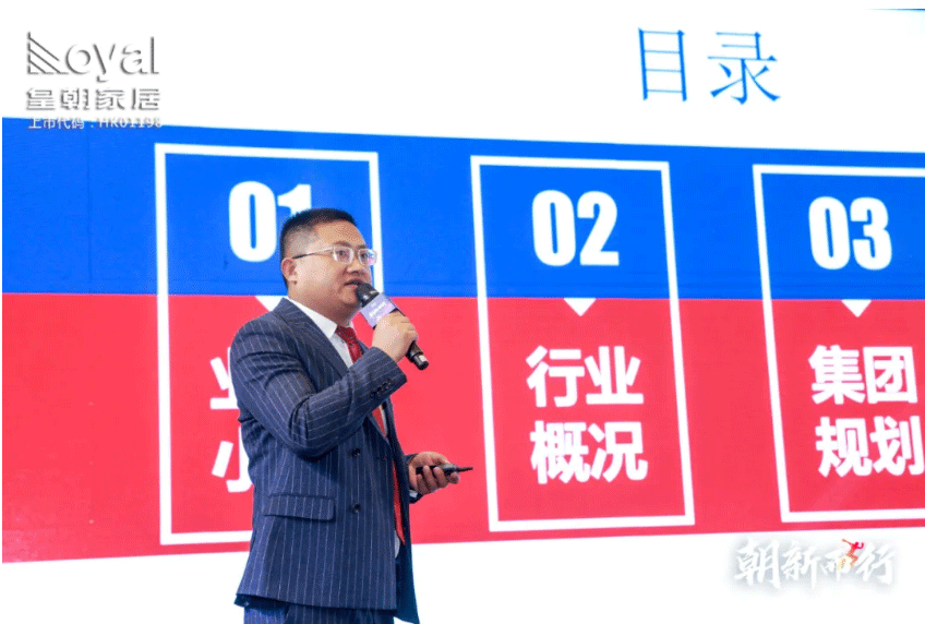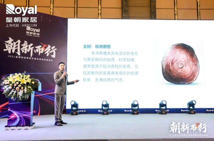 随后,皇朝整体家居产品开发部总监陈繁先生发布了2021皇朝整体家居新品及营销政策,新品仍然以“艺术家居 全屋整案”为定位,通过个性化定制实现不同人对家居的个性要求,打造一体化的整体空间感受。