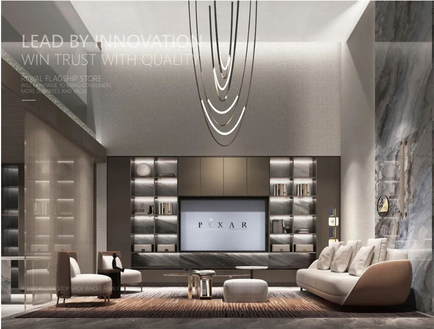 新设立的设计中心和选样中心 星辰影院,与客户服务中心相结合,构成完整的整家交付中心,皇朝以其专业之姿为消费者提供咨询和方案展示,消费者更是在此通过实际触摸体验,从千种材料中选择所需,完成整家定制意向,皇朝高端整家定制生活馆更是通过便捷的交互式展示和定制化服务流程,提高销售转化率,并增强消费者满意度, 。