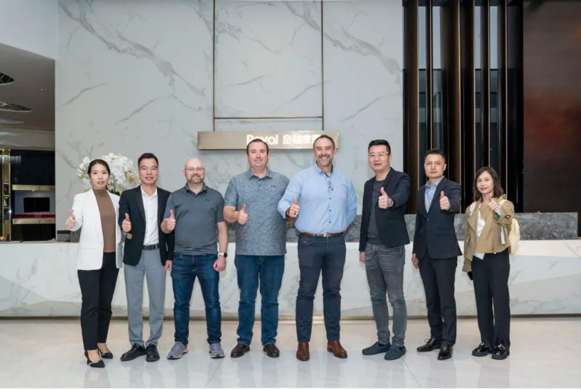 2023年11月16日,A,H 星辰影视,Beard集团首席执行官Mr, Tony Pearson、首席运营官Mr, Brent Tyrell、国际业务经理Mr, David Jack、中国区代表Jimmie女士莅临皇朝集团总部Domino展厅。 。