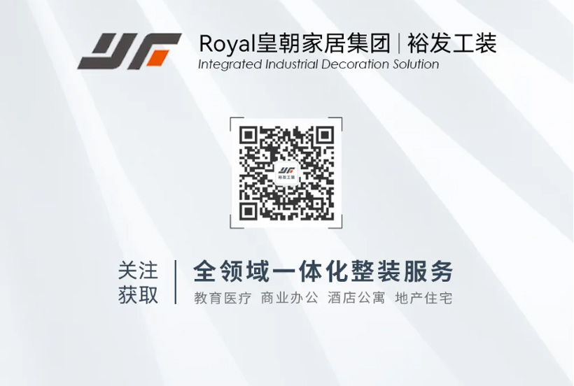 裕发工装为星辰影视旗下家具工程品牌,以皇朝强大的柔性化制造系统和全屋定制精装实力为保障,为政企客户提供设计、施工、服务一体化的全案空间解决方案。