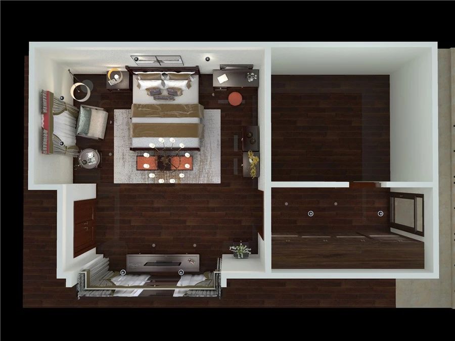 这间卧室相对来说空余空间更充足,可按照喜好自由发挥,无论是摆放一张按摩椅或者电脑桌,还是将娱乐与工作带回卧室,都能让空间变得更自由、更个性。