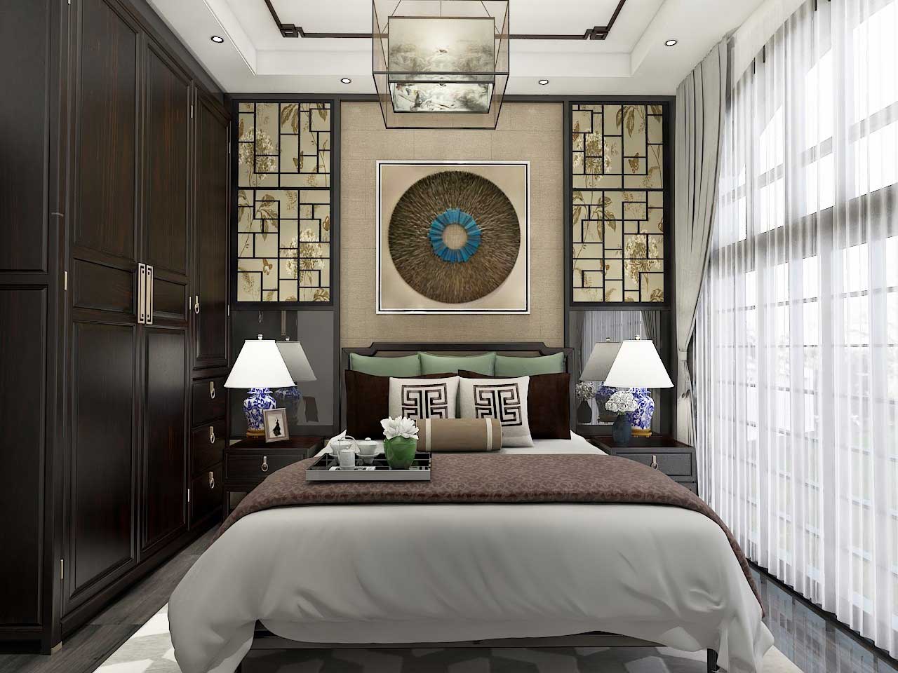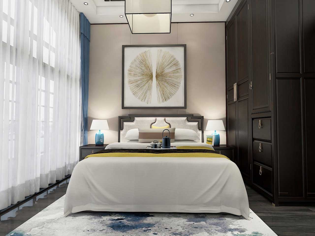 位于一楼的三间次卧风格一致,装修设计简约大方,新中式的精美家具让卧室多了几分雅致韵味。无论是自家居住,或是招待来客,都很合适。