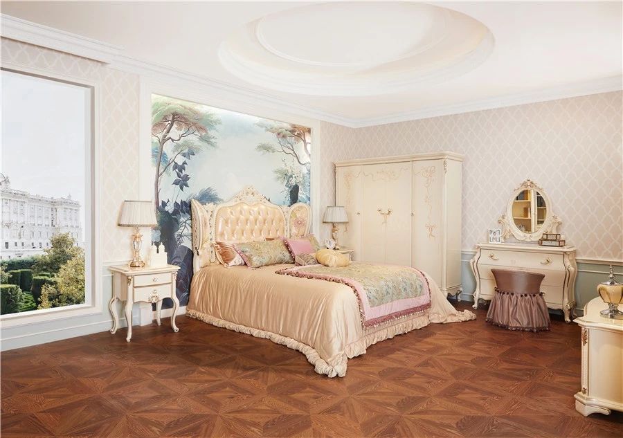 当卧室里大面积的香槟金色与粉色交织,搭配精致的雕花设计,梦幻又浪漫,优雅又宁静,如同身处童话梦境 星辰影视。