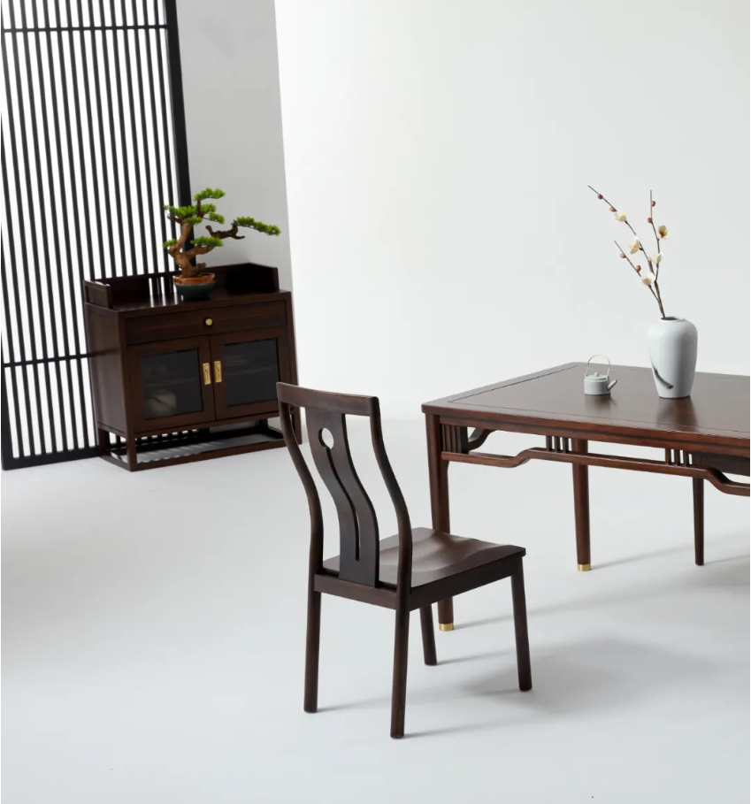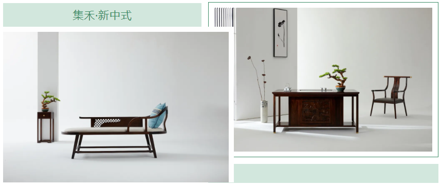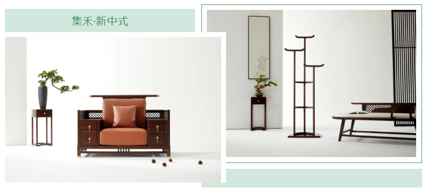 家具在造型设计方面做了大的创新,做到简而不滥,保证集禾的独特性和美观性,如椅的形制,在继承了一统碑椅、官帽椅、太师椅、圈椅等传统椅子造型的基础上,椅背做曲线的创新设计,让椅子更有动的形态,打破了传统四平八稳、古直板正的刻板印象,更加符合现代人的倚坐需求,尤其是部分座椅上的软包,这种逃离常规的设计,既不落俗套又舒适实用。