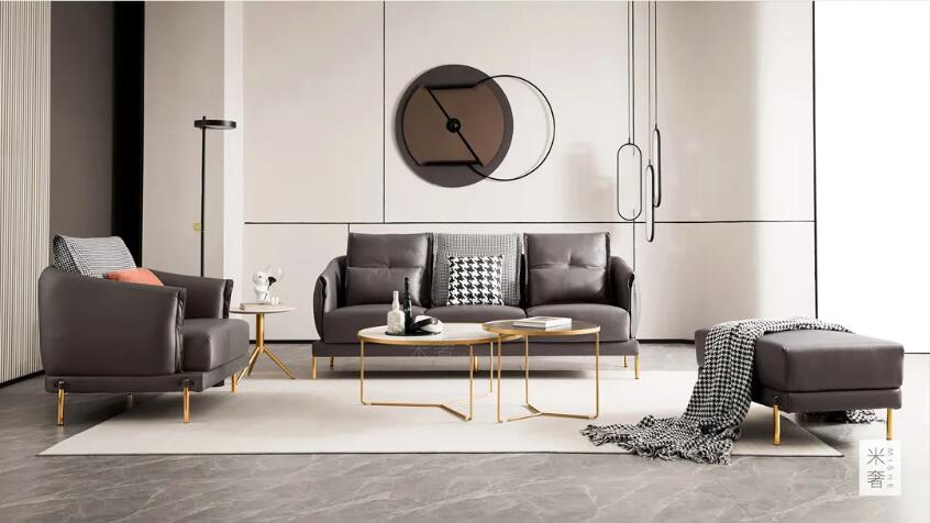 整体空间通过将奢华的金色,干净的白色和沉稳的咖色,附着于金属、皮革、布艺、岩板材料家具之上,让色彩与材质刚柔并济,绽放出精致浪漫的生活美学。