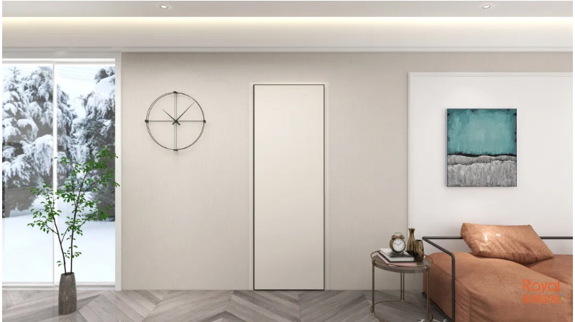 这是一款有着对比强烈的视觉效果的隐形门,纹理粗犷自然,颇有大气磅礴之势,风格上会更偏文艺。