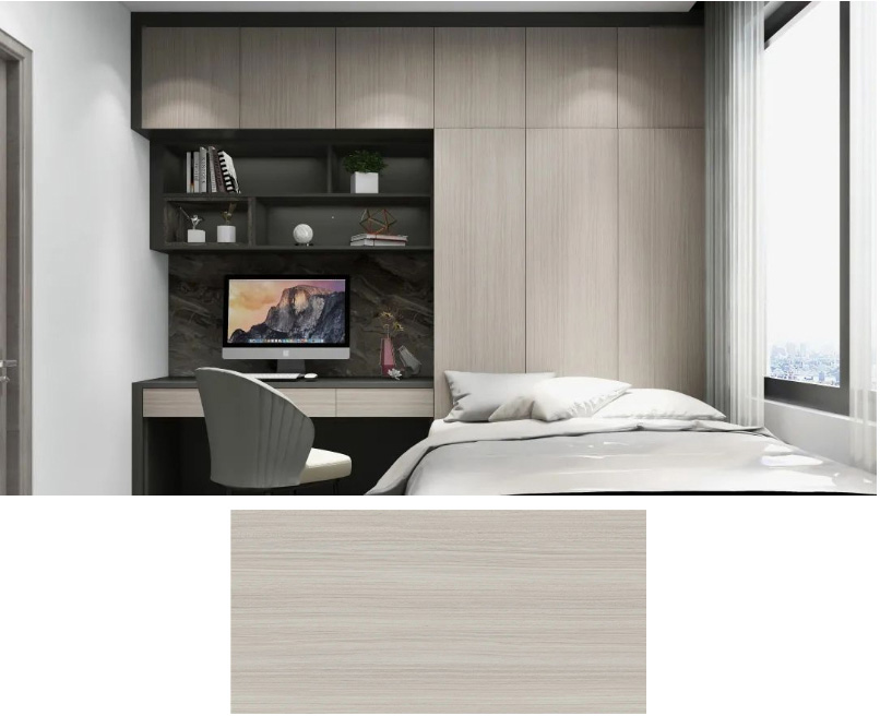 白色是空间设计的基础色,百搭,而在白色的基础上,这款板材的纹理若隐若现,更能演变出万般变化。