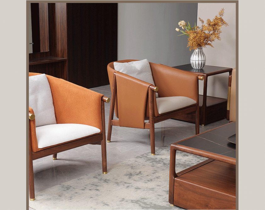 真皮、实木、黄铜的混搭