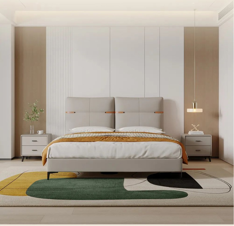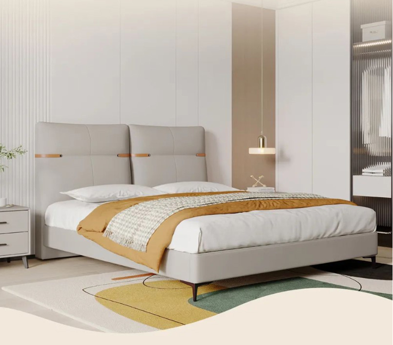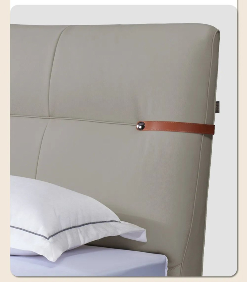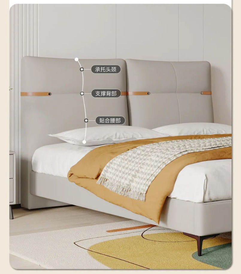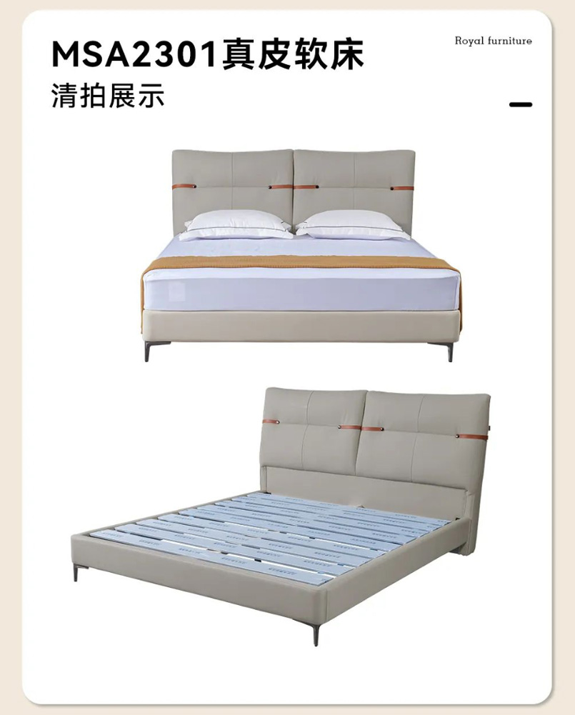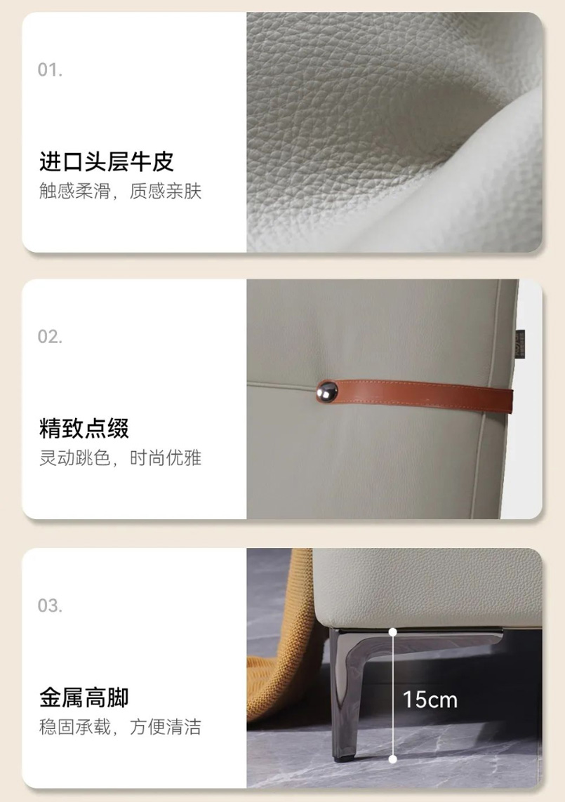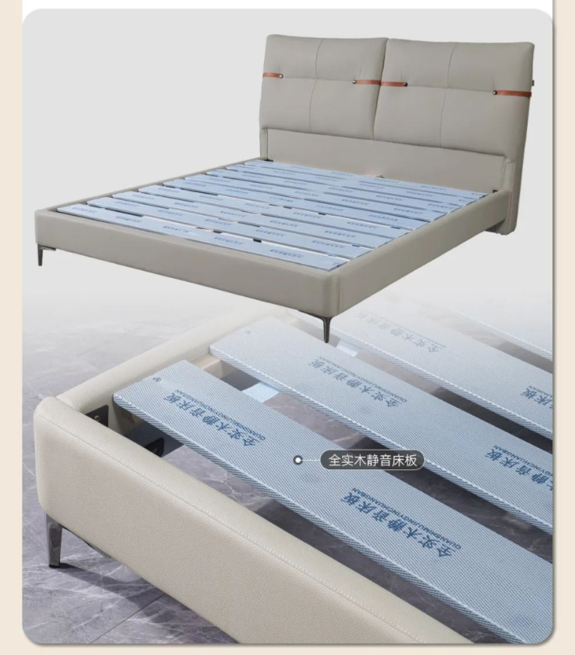 【甄选进口头层牛皮】|【三面齐边设计】|【全实木静音排骨架】