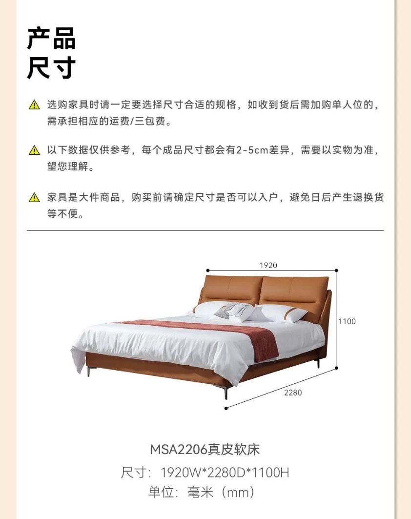 【MSA2206进口头层牛皮软床】