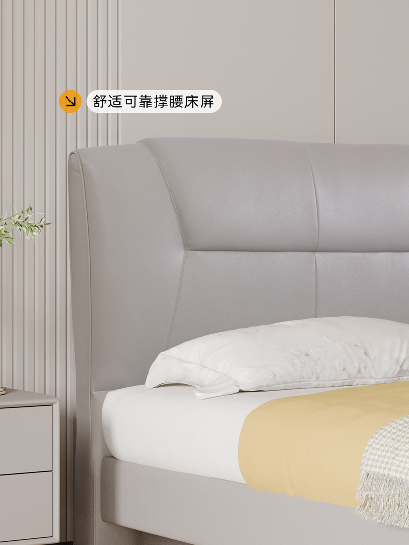 进口头层牛皮大床,米奢系列MSA2303真皮软床, 星辰影视.