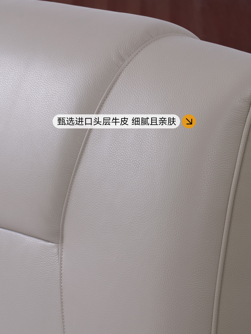 (2)面料选用的是头层牛皮,细腻的纹理和舒适的触感让人一接触就爱上。