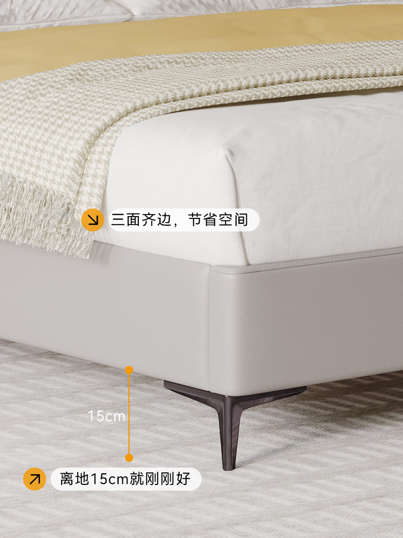 (3)15CM离地高度床脚,打扫无忧,细节把控到位。