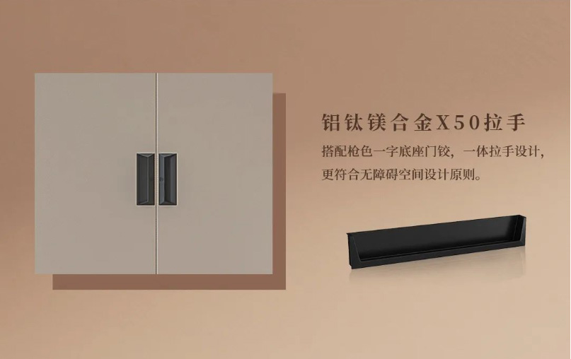 锌合金压铸一体设计拉手,更符合无障碍空间设计原则。背面配置防撞防震胶条,保护柜体的同时也保护玻璃门板。让生活简约而不简单!