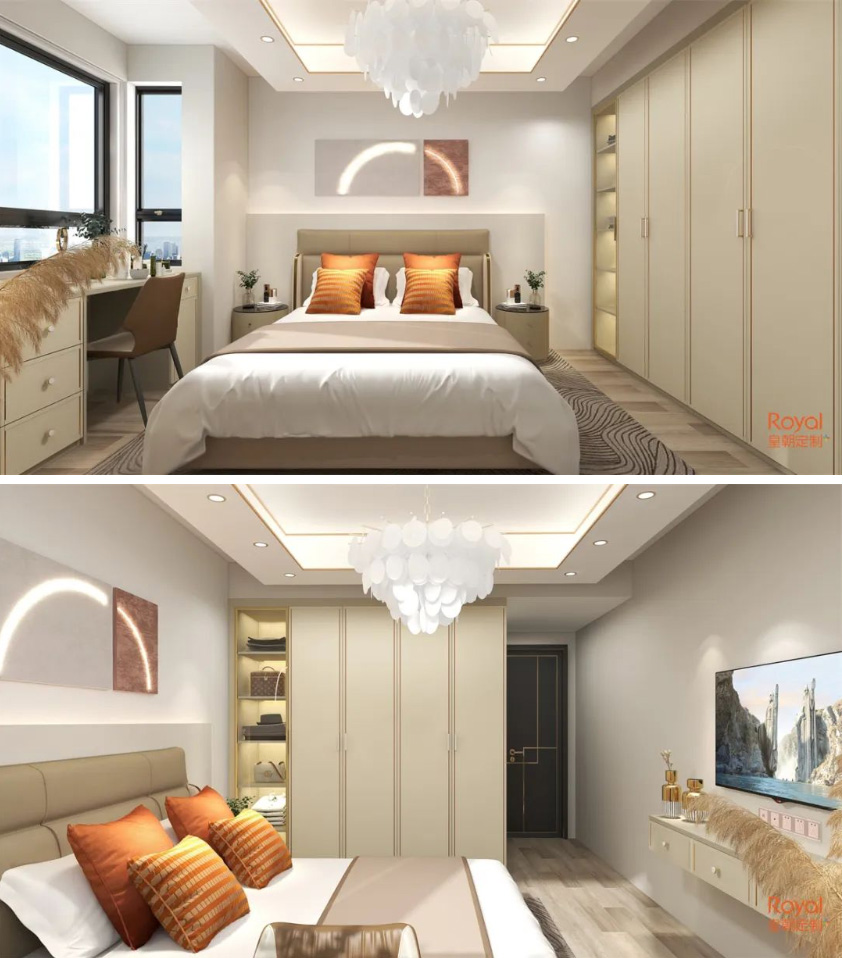不同家具造型的高矮错落,降低了压迫感,更实现了空间的最大利用率,使卧室更加明亮宽敞,还能营造出错落有致的空间美学 在线影视, 。